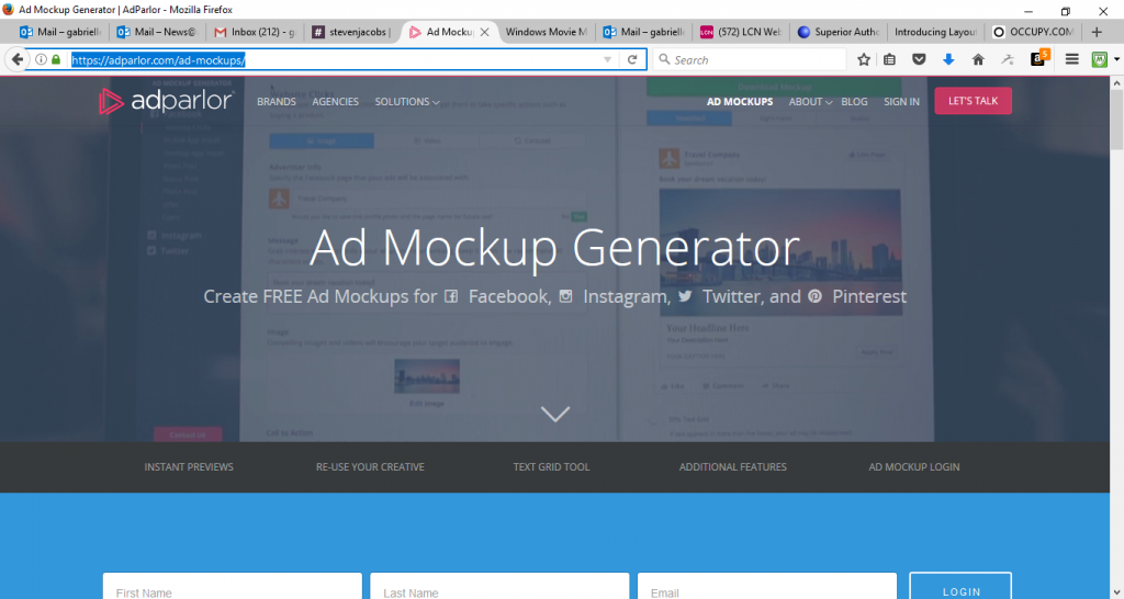 你可以使用Ad Parlour在Facebook、Twitter、Pinterest和Instagram等社媒平台上免费创建广告模型,并预览广告的展示效果。